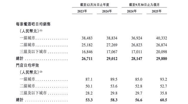 新开门店(尤其是在非核心商圈或低线城市)的单店模型远不如老店。招股书显示,三四线城市的日均销售额仅为一线城市的一半甚至更低,公司是否在三线城市跑通了单店模型?