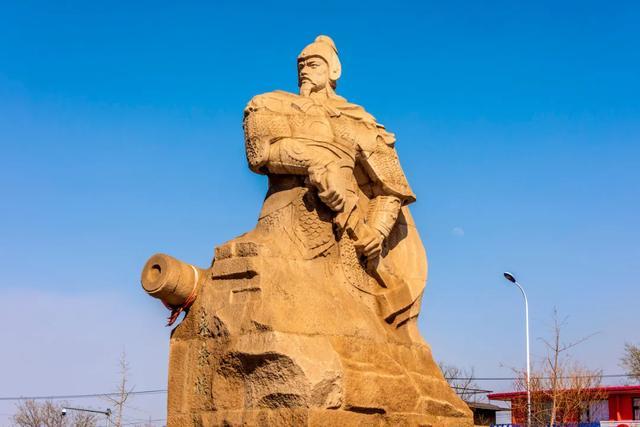 ▲辽宁葫芦岛兴城袁崇焕像,人像旁雕有一门红夷大炮。图源:图虫创意